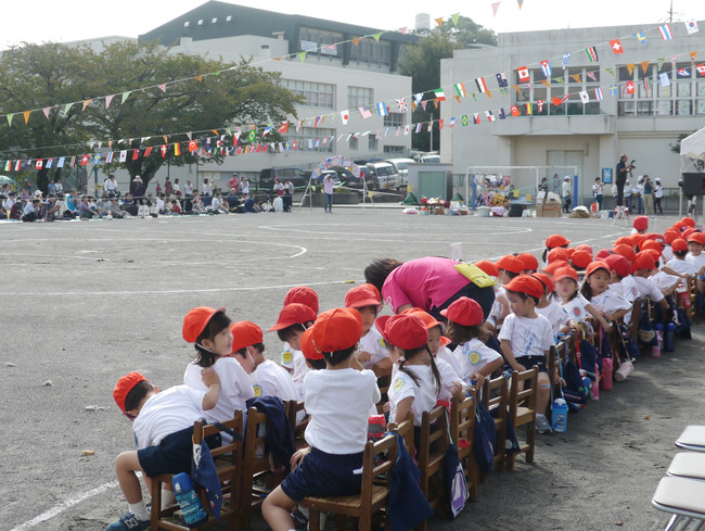 予定していた土曜日に雨が降り、運動会は1日ズレて日曜日に開催。