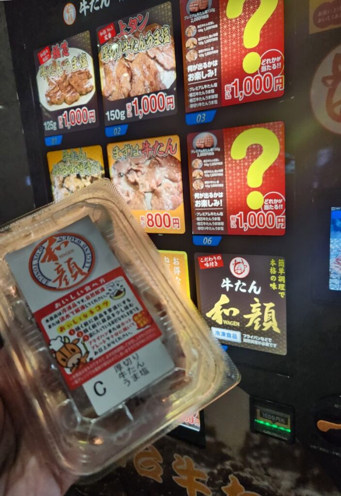 帰りがけに牛タン自販機で牛タンを買いました。