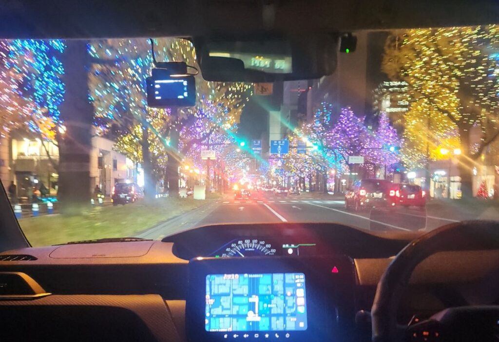 ホテルまで送っていただきながら御堂筋のイルミネーションを見ました。
